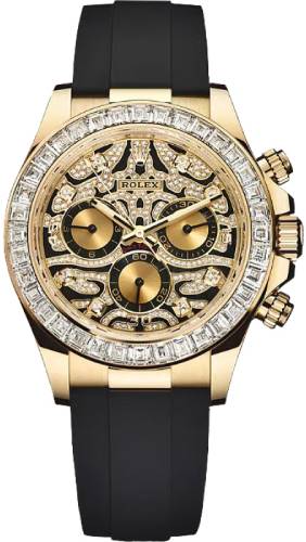 Rolex Cosmograph Daytona Yellow Gold Black Diamond Dial Orange Baguette Sapphires Bezel - 116588SACO
